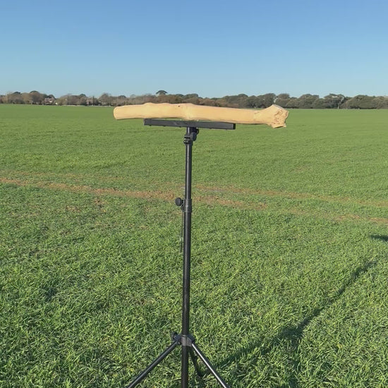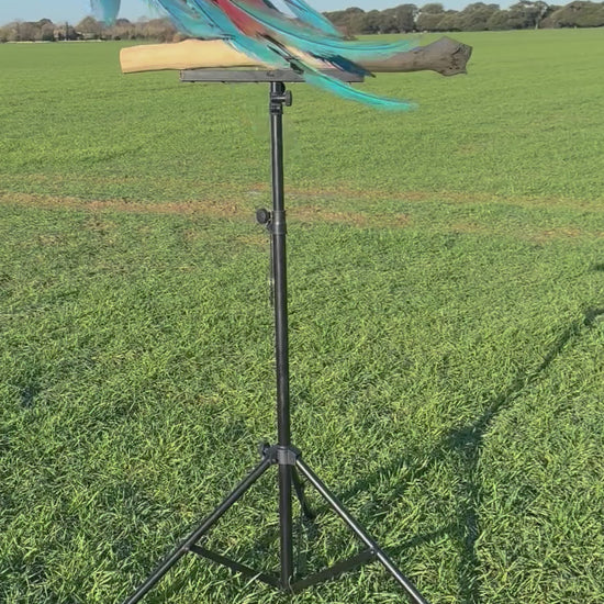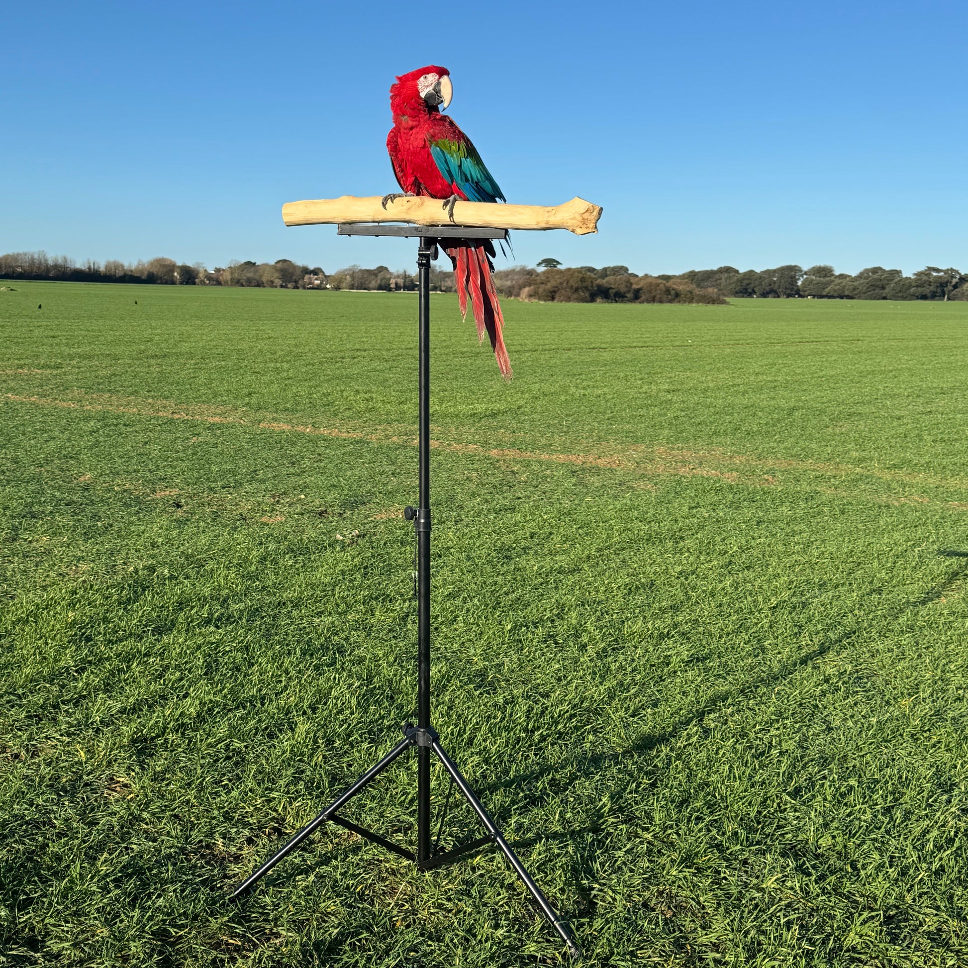 This training stand combines a thick, natural hardwood perch with a wide, tripod base designed to stay steady even under the weight of large parrots. The telescopic centre pole adjusts smoothly from 115cm up to 250cm, making it perfect for everything from indoor step-up practice to long-distance outdoor recall.